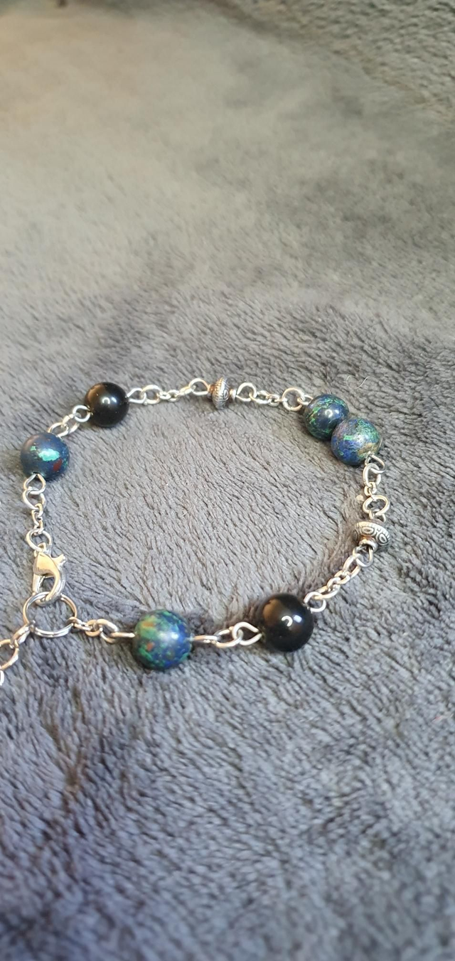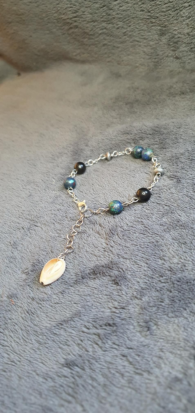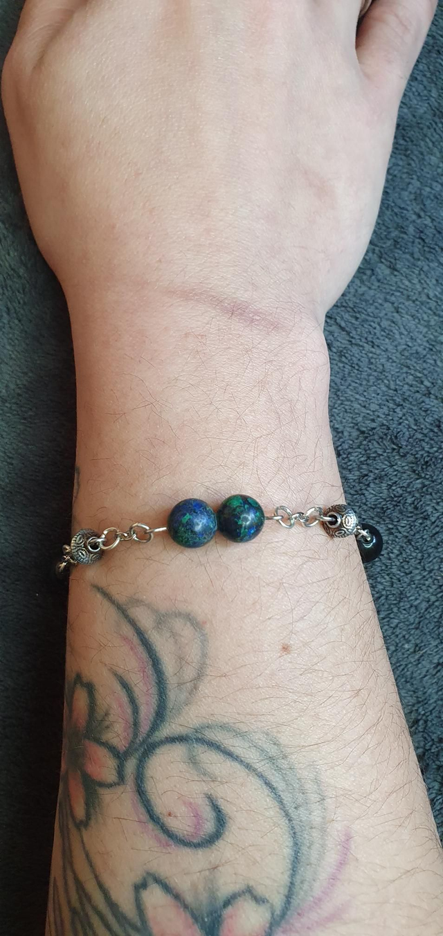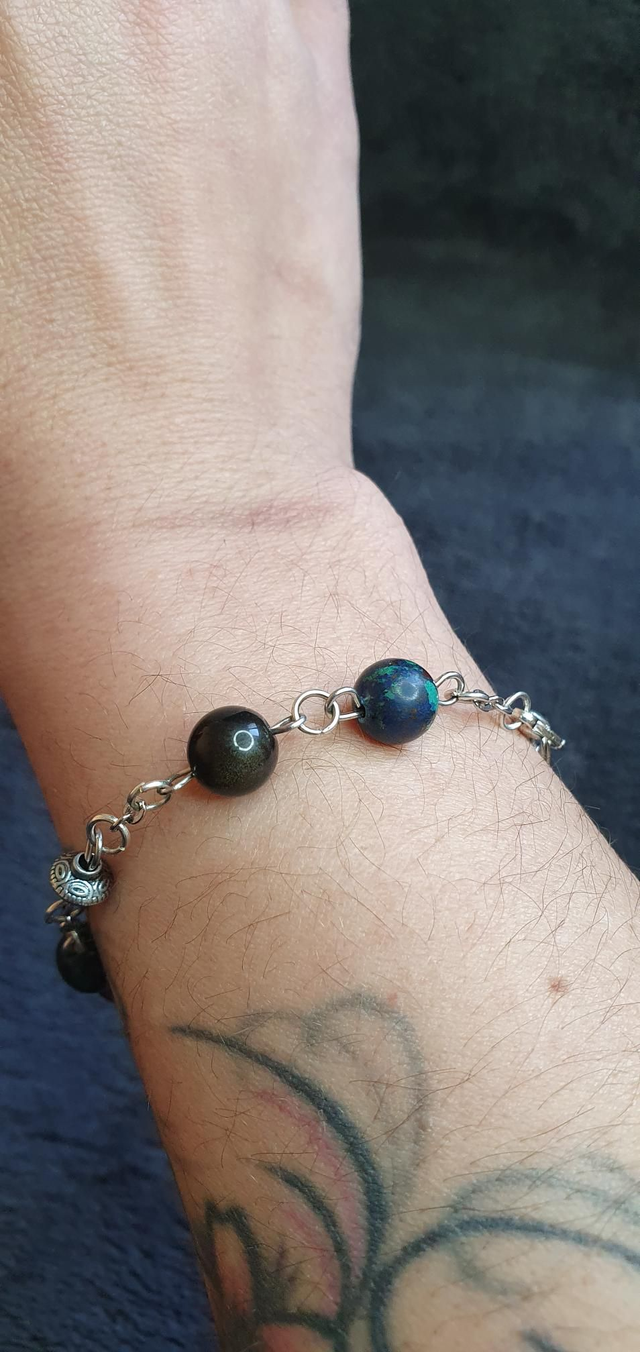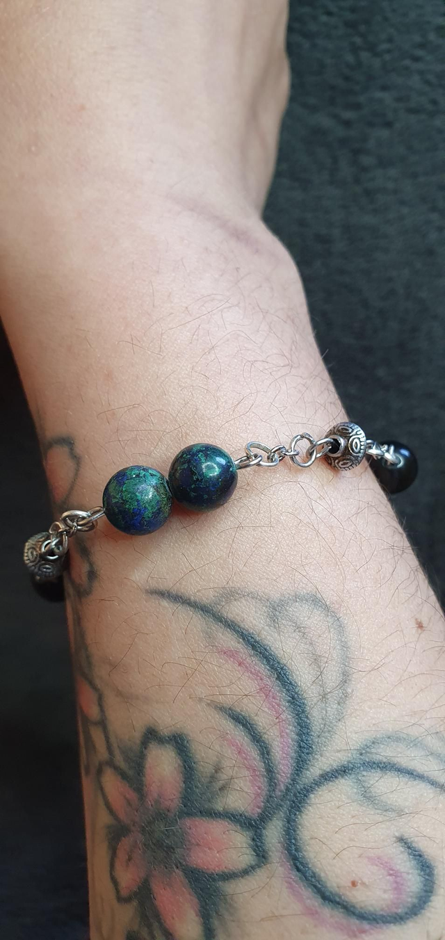 Bracelet acier inoxydable en Azurite/Malachite et Obsidienne dorée