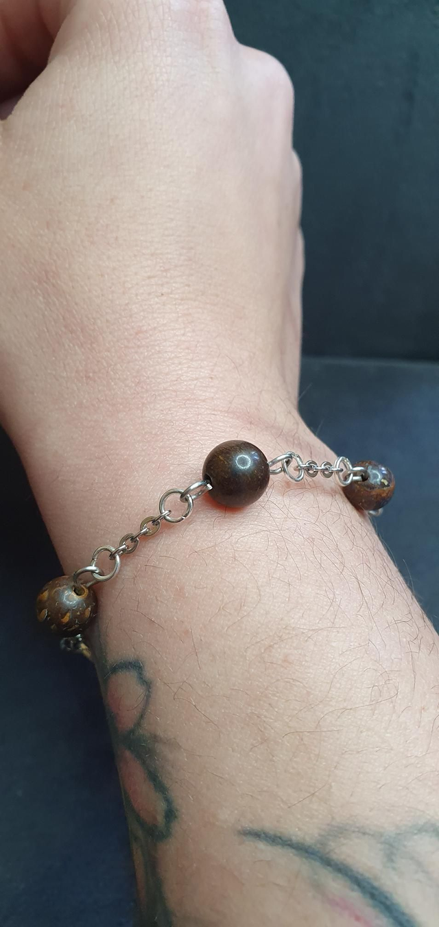 Bracelet acier inoxydable en Bronzite et Opale boulder