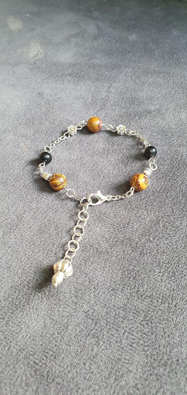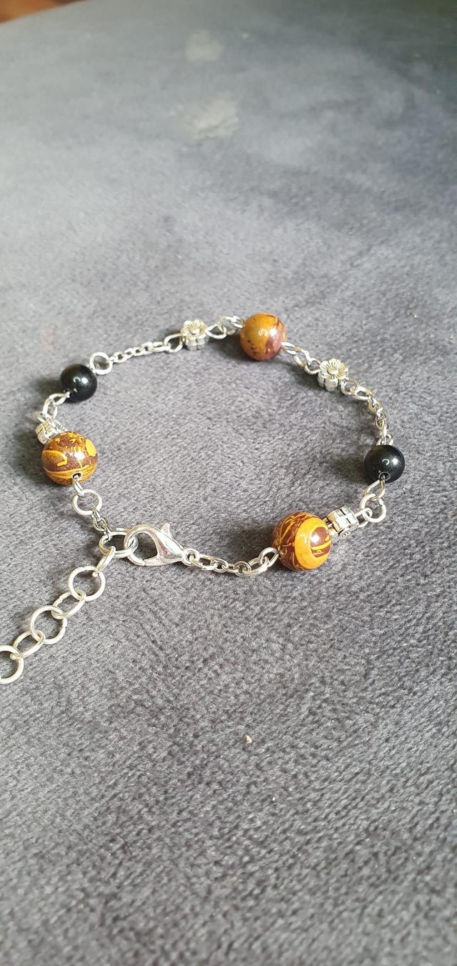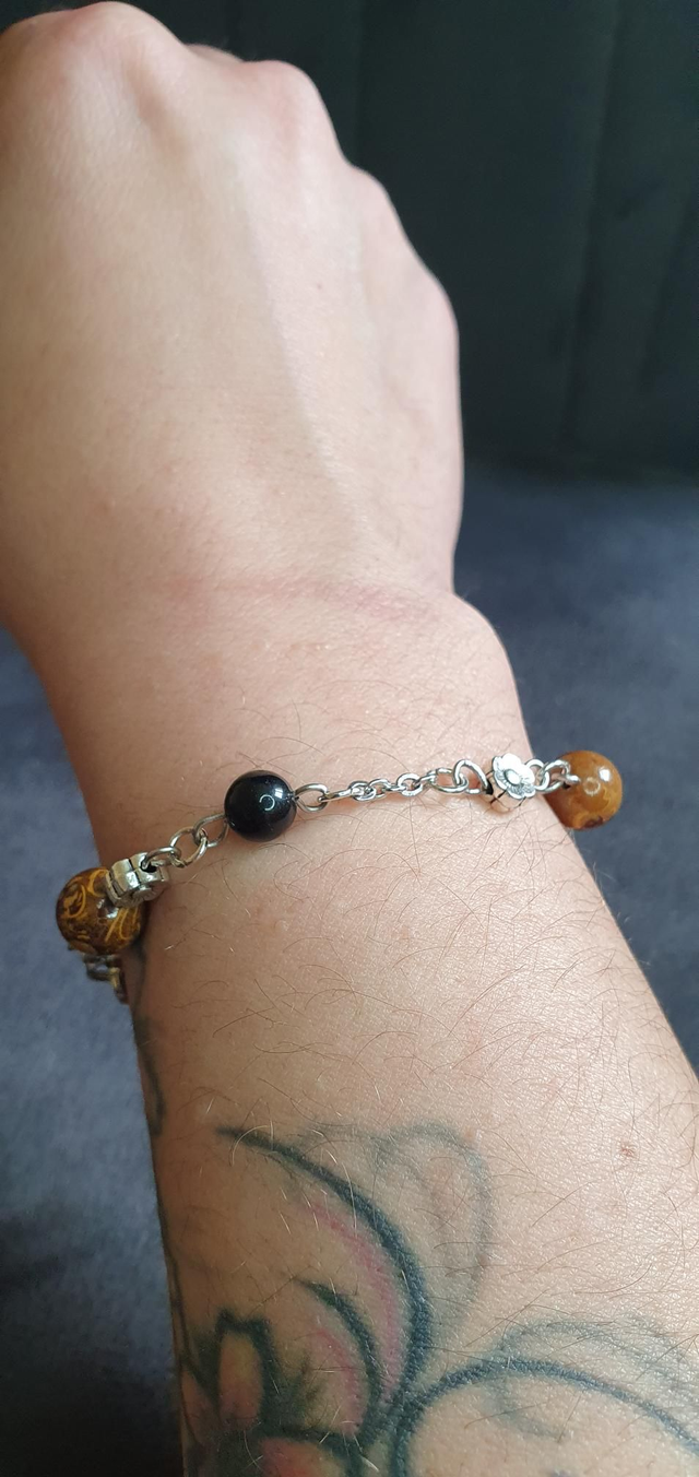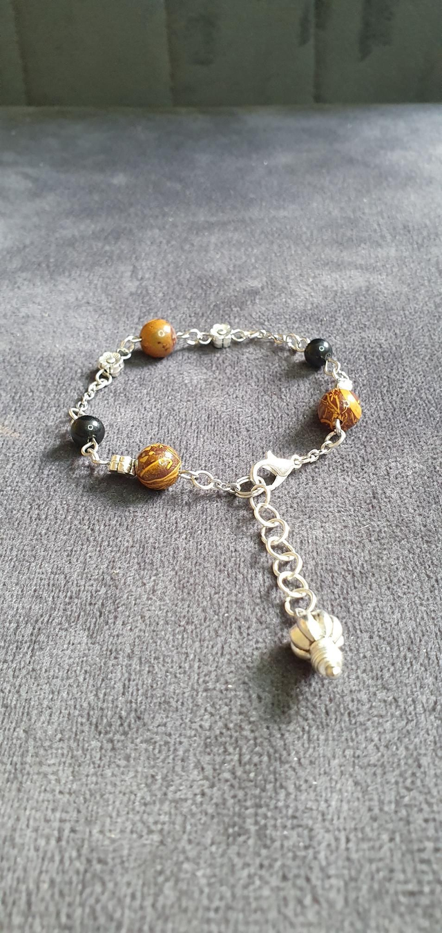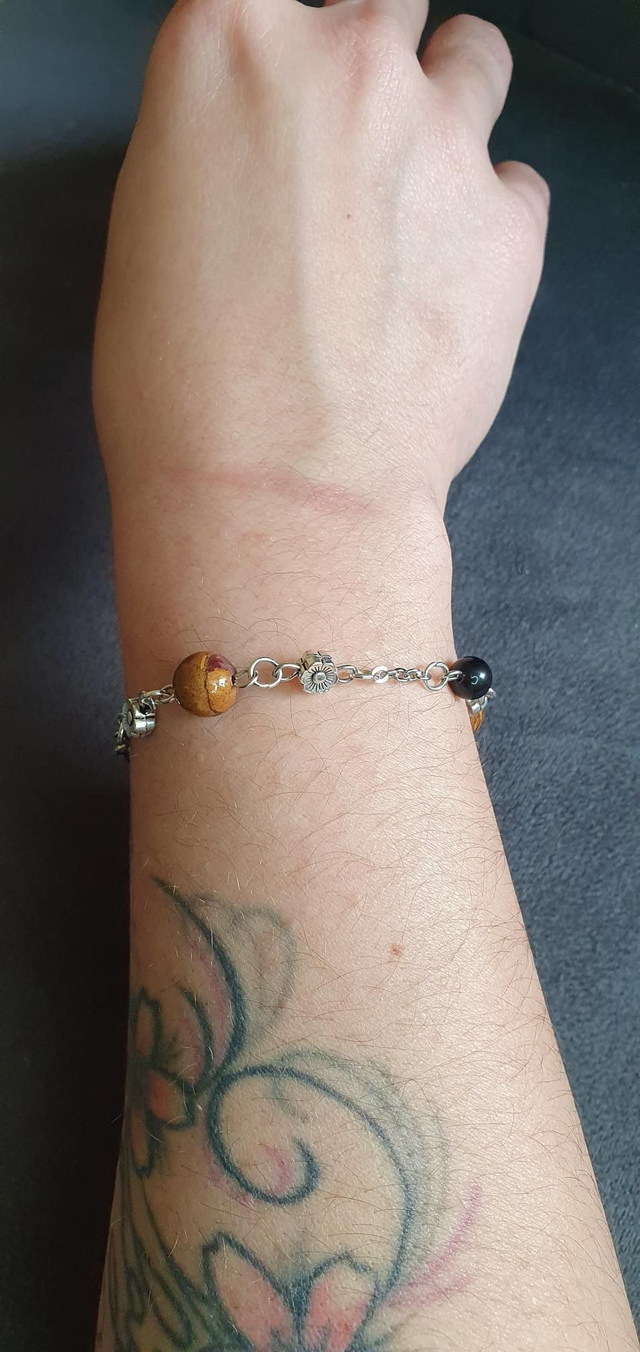 Bracelet acier inoxydable en Jaspe mariam et Obsidienne noire