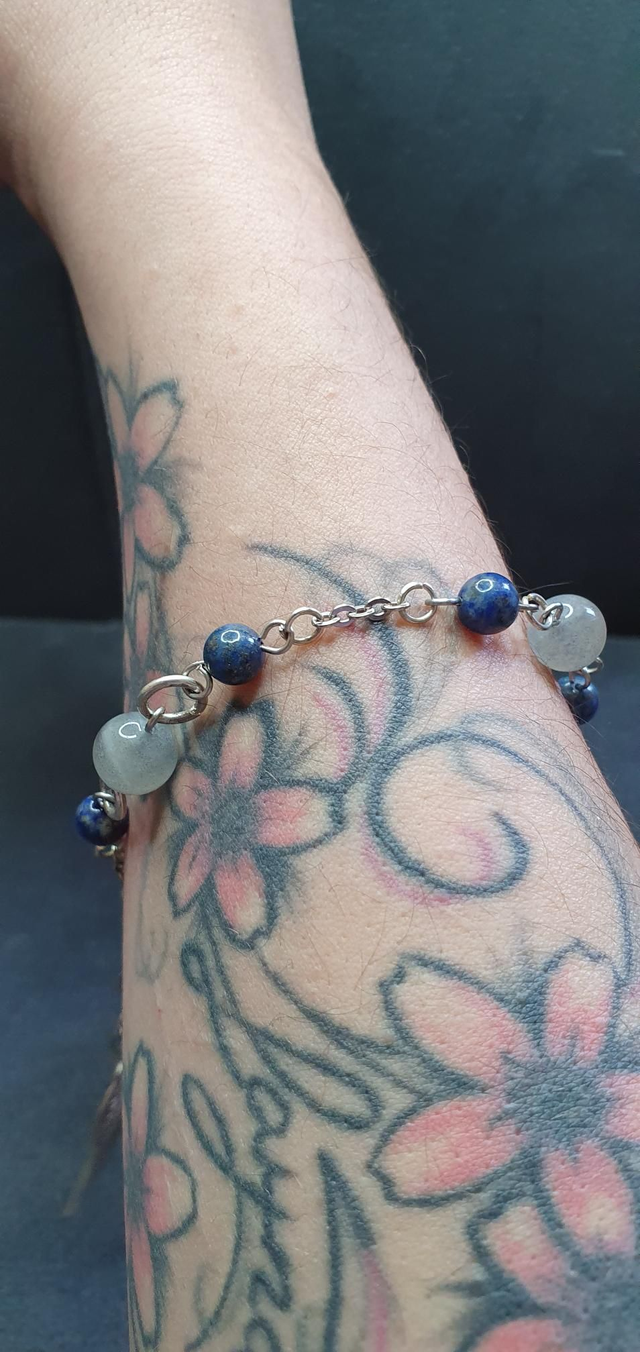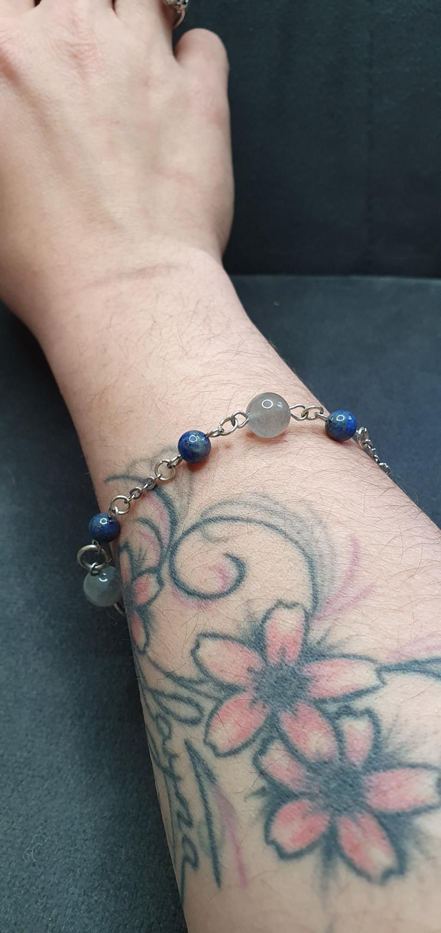 Bracelet acier inoxydable en Labradorite et Lapis-lazuli