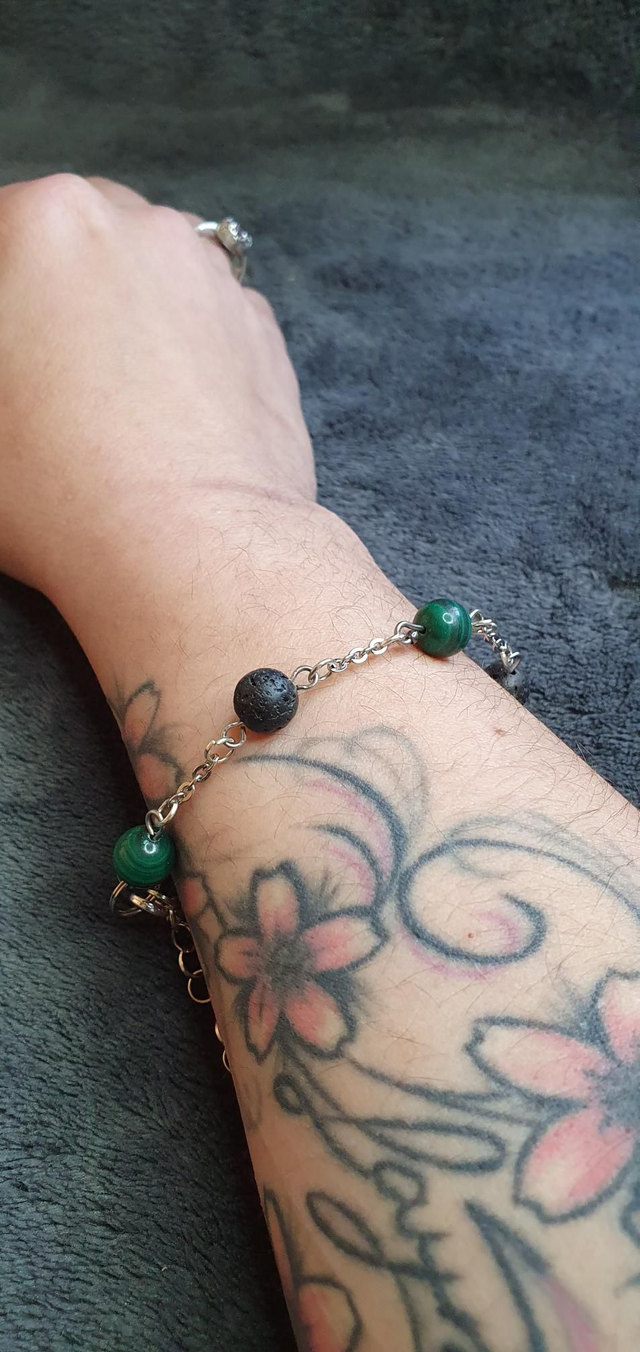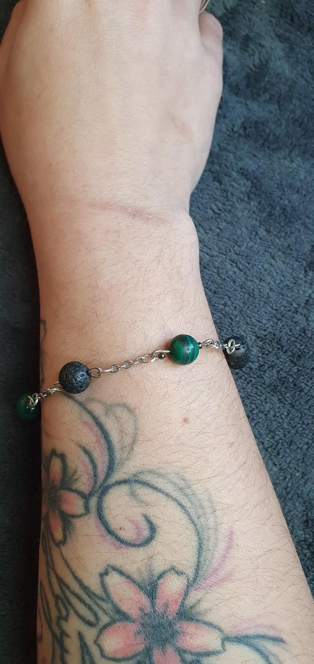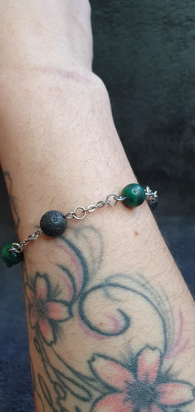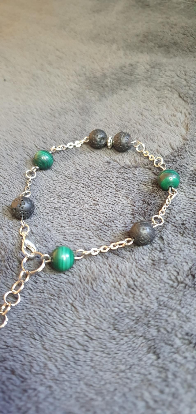 Bracelet acier inoxydable en Malachite et Pierre de lave