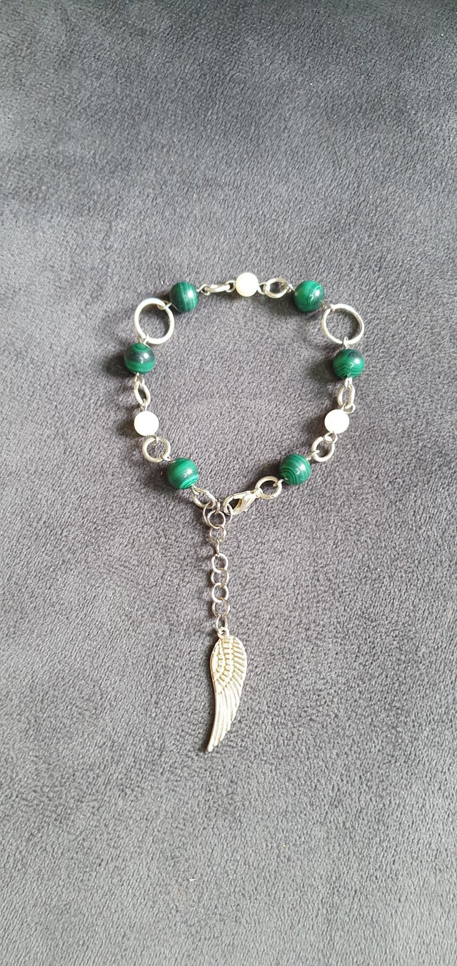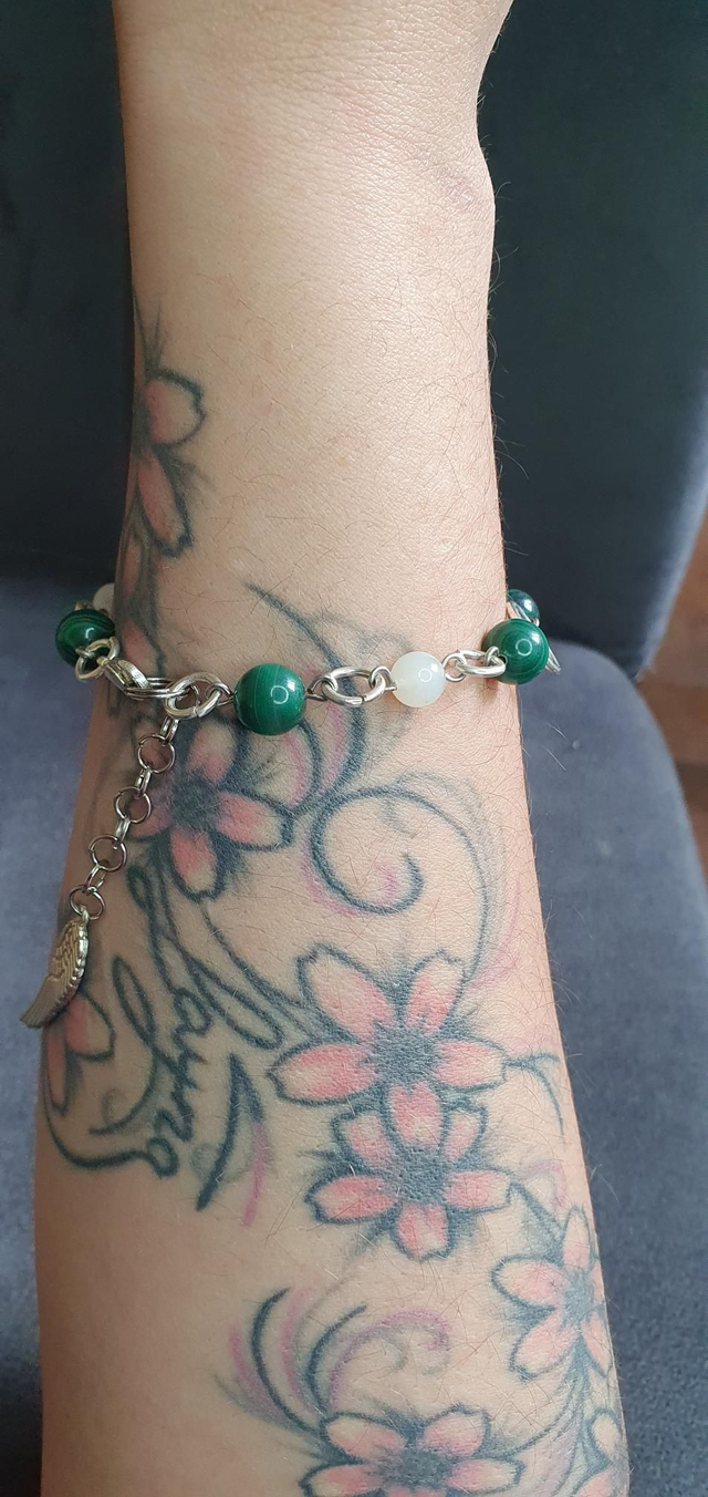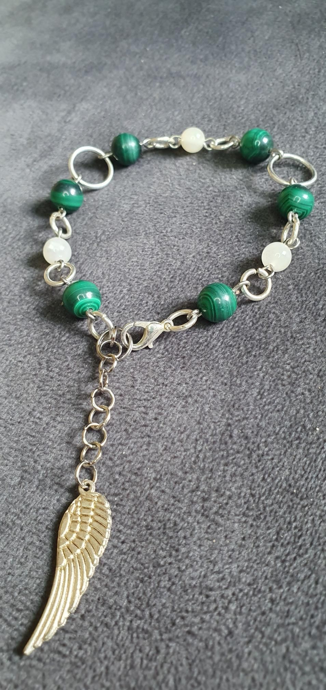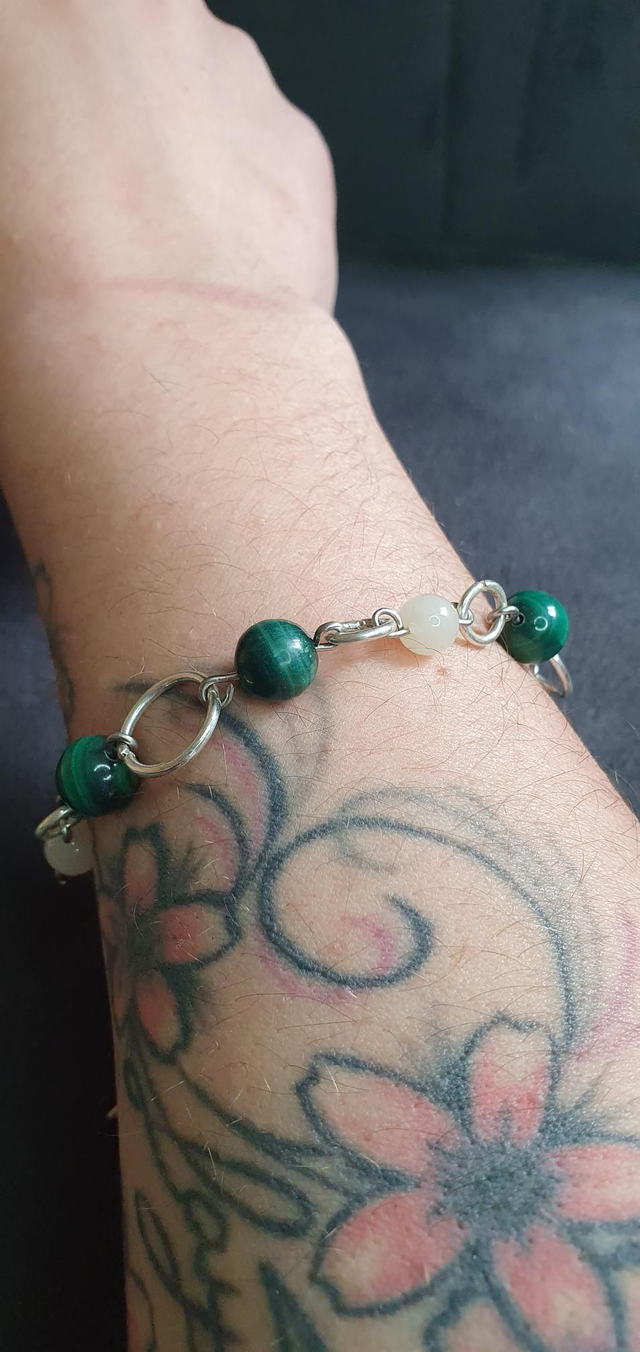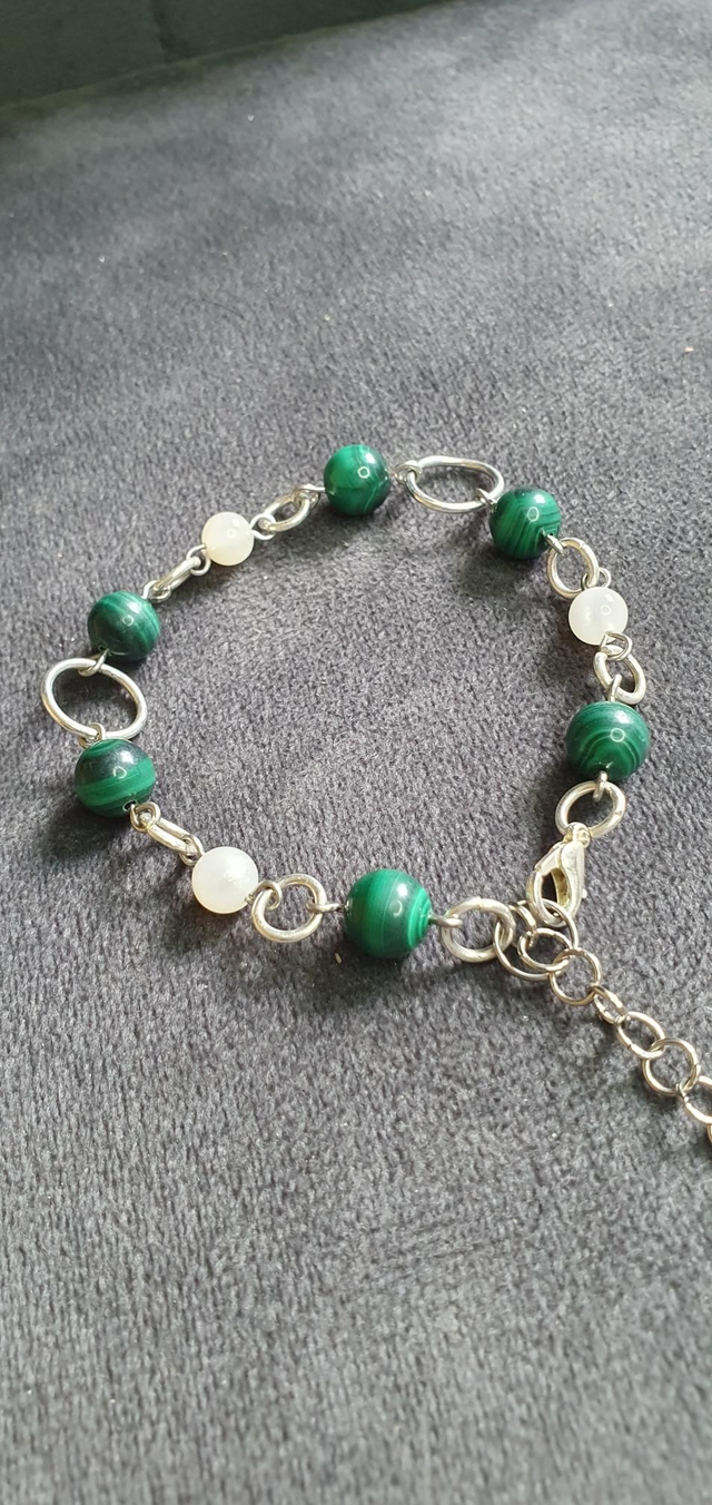 Bracelet acier inoxydable en Malachite et Pierre de lune blanche