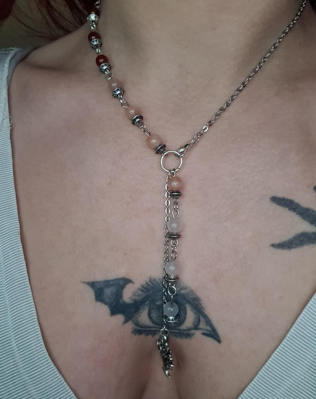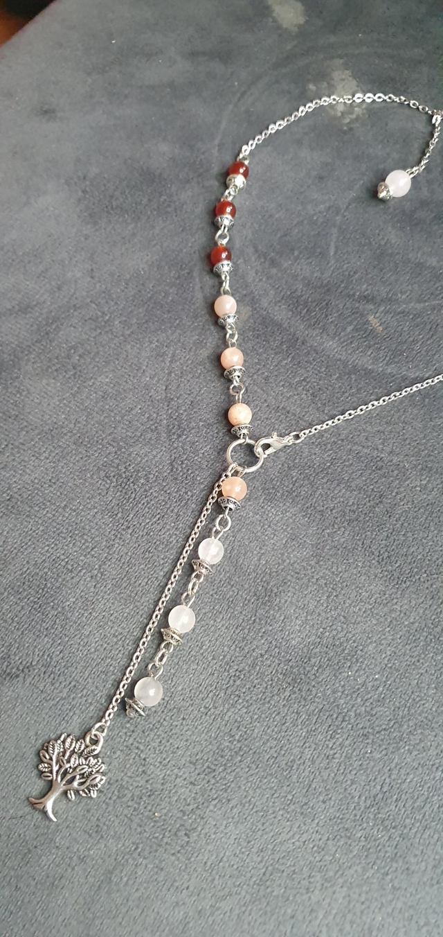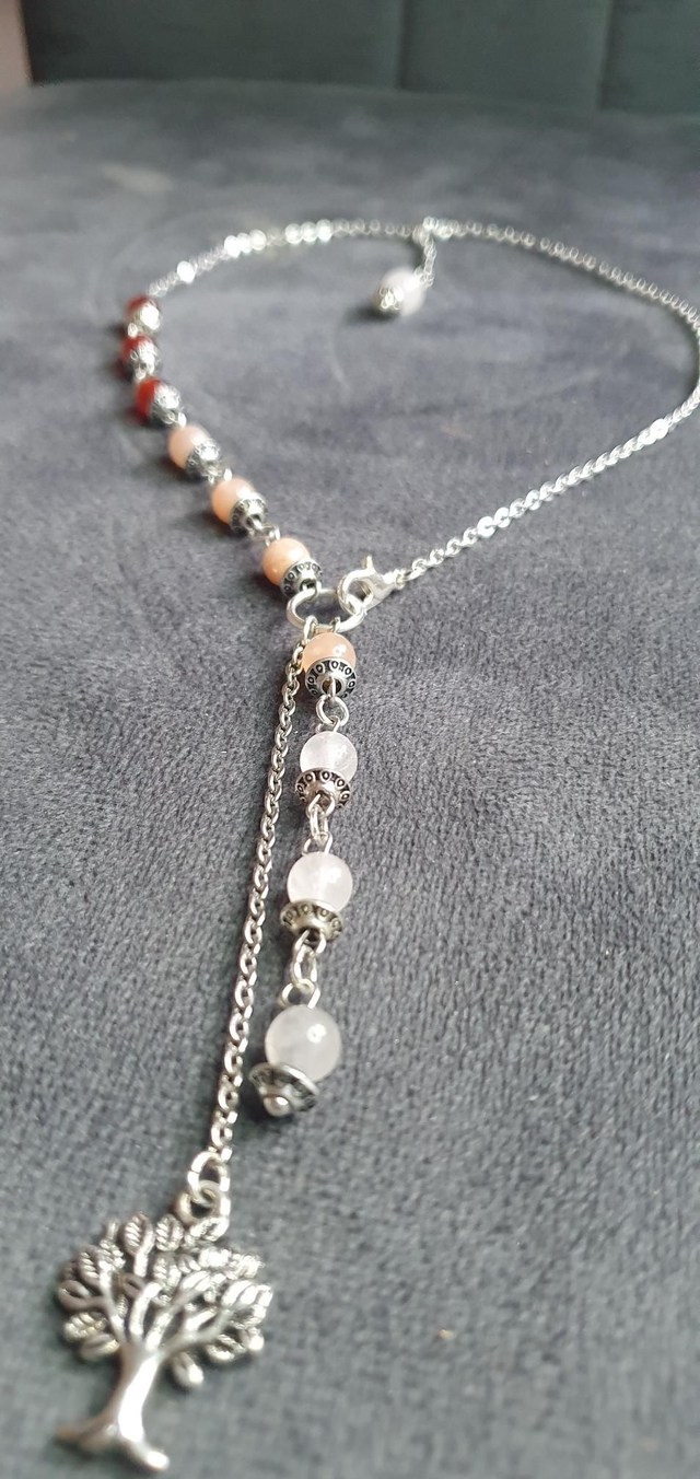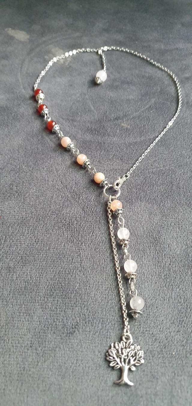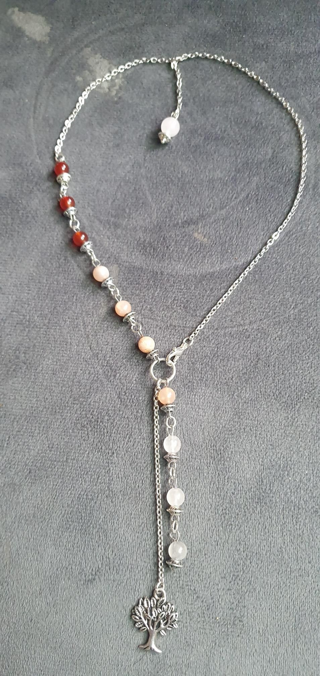 Collier acier inoxydable en Cornaline, Pierre de lune pêche et Quartz rose