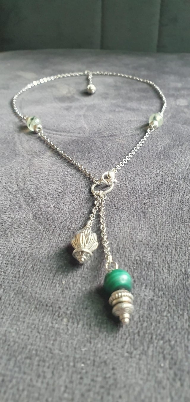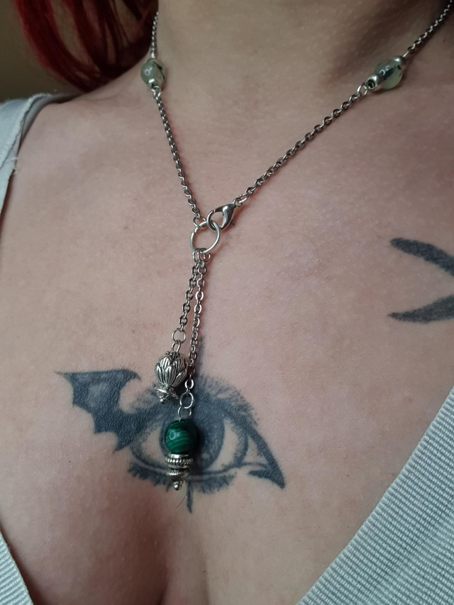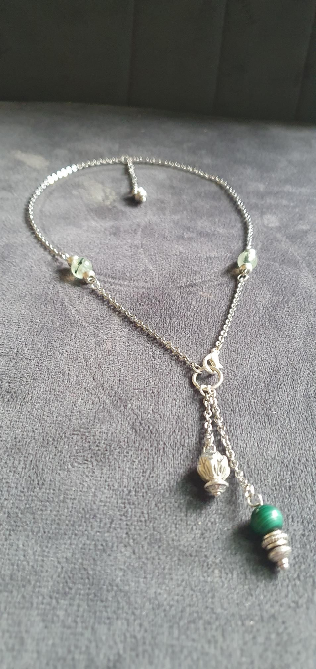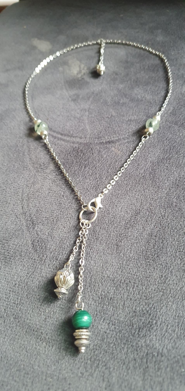Collier acier inoxydable en Prehnite et Malachite
